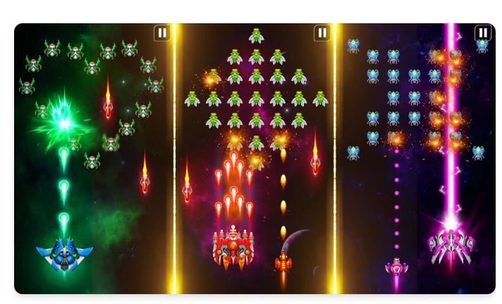 گرافیک خیرهکننده و رنگارنگ: طراحی پسزمینههای کهکشانی، انفجارهای زیبا و جلوههای بصری مدرن، بازی را به یک تجربه چشمنواز تبدیل کرده است.