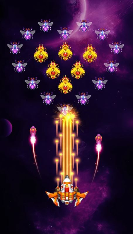 گیمپلی بازی ترکیبی از اکشن سریع، عکسالعملهای دقیق و استراتژی هوشمندانه است. در هر مرحله، با موجهای جدیدی از دشمنان روبهرو میشوید که هرکدام از سلاحها و حرکات خاص خود استفاده میکنند. کنترل فضاپیما بسیار ساده طراحی شده؛ کافیست انگشت خود را روی صفحه بکشید تا حرکت کند و به طور خودکار تیراندازی انجام دهد. این سادگی باعث میشود حتی بازیکنان تازهکار نیز از بازی لذت ببرند.